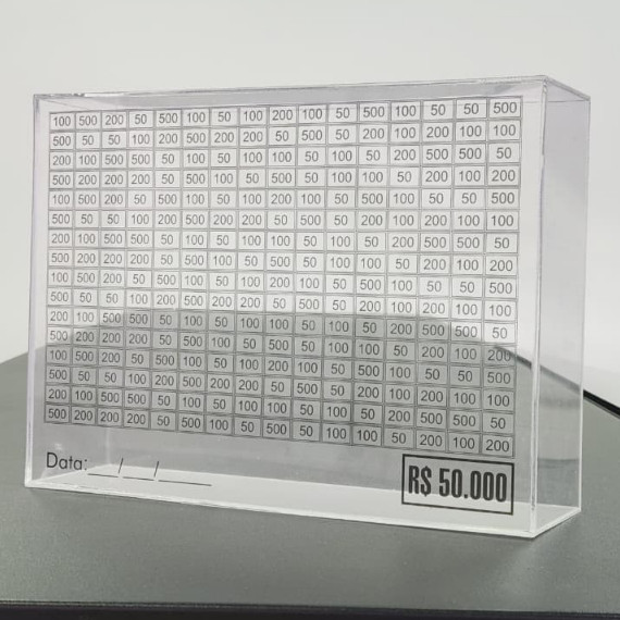 Cofre 50 Mil Desafio Método Japonês Juntar Dinheiro Economizar Em Acrílico