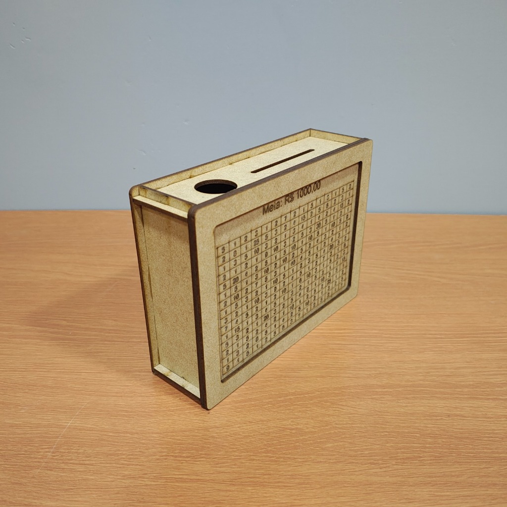 Cofre de MDF – Desafio de Economia | Organize suas Finanças de Forma Visual Transforme o hábito de poupar em algo simples, motivador e divertido! Este cofre em MDF foi desenvolvido com o método visual de economia, permitindo que você acompanhe cada depósito em tempo real, marcando sua evolução diretamente na peça. Ideal para quem deseja criar disciplina financeira, alcançar metas de forma prática e ainda decorar o ambiente. 📌 MODELOS DISPONÍVEIS (ESCOLHA SUA META): 💵 Desafio R$ 1.000 💵 Desafio R$ 2.000 💵 Desafio R$ 3.000 💵 Desafio R$ 4.000 💵 Desafio R$ 5.000 💵 Desafio R$ 6.000 💵 Desafio R$ 7.000 💵 Desafio R$ 8.000 💵 Desafio R$ 9.000 💵 Desafio R$ 10.000 👉 Escolha a meta que melhor se encaixa no seu objetivo financeiro. ESPECIFICAÇÕES DO PRODUTO Material: MDF cru (madeira de reflorestamento) Acabamento: Natural (pode ser usado assim ou personalizado com pintura) Tamanho: 22 cm x 15 cm Diferencial: Tabela de controle gravada diretamente no cofre para marcar cada depósito