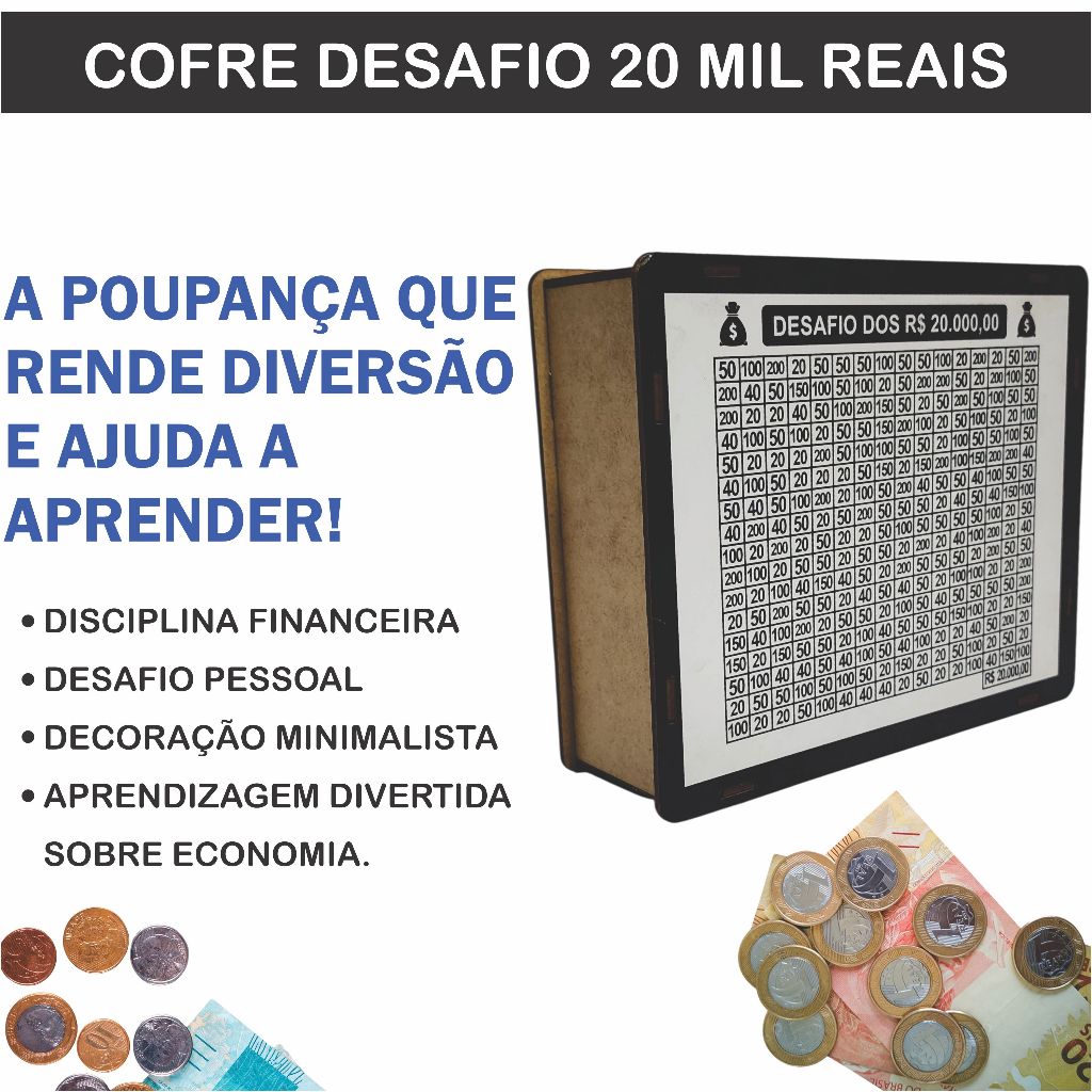 Cofre Cofrinho Desafio 20 mil Caixa de Dinheiro MDF / Método Japonês / Poupança / Depósitos Contador