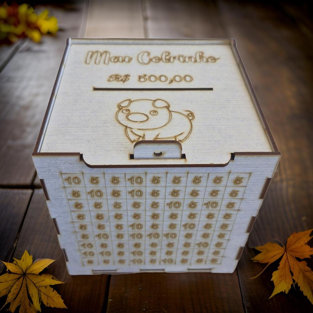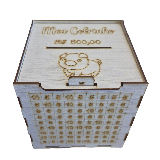Cofre do 500 Depositos. Agora você pode juntar aquele troco e ainda guardar para aquela tão sonhada compra. ===================================================== Essa é a Melhor maneira de você conseguir juntar seu dinheiro Medidas:15x15x15 Material: mdf 3mm Qualquer Duvida estamos a disposição.