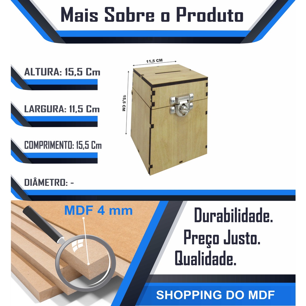 💰 Urna Decorativa em MDF – Organização, Estilo e Função Cofrinho para o seu Lar! Decore e organize com criatividade! Nossa urna multifuncional em MDF pode ser usada como peça decorativa, porta-objetos ou até mesmo como cofrinho personalizado. Versátil, resistente e com acabamento impecável — ideal para diversos ambientes da casa ou escritório. ✅ Detalhes do Produto: Material: Madeira MDF de alta qualidade Técnica: Corte a laser e router para um acabamento preciso e duradouro Impressão: Adesivo vinil com qualidade de imagem garantida Uso: Decoração, organização ou cofrinho Acabamento: Montado artesanalmente, com zelo e cuidado 📏 Medidas: Altura: 15,5 cm Largura: 11,5 cm Comprimento: 11,5 cm Conteúdo: 1 (uma) urna decorativa 🛡️ Qualidade e Segurança: ✔ MDF certificado, resistente e leve ✔ Impressão nítida, com adesivo vinil de longa durabilidade ✔ Produto artesanal, feito com atenção aos detalhes ✔ Embalado com proteção extra para evitar danos no transporte 📦 Garantia & Envio: Garantia de 7 dias contra defeitos de fabricação Envio em até 2 dias úteis após confirmação do pagamento Código de rastreamento fornecido para acompanhar a entrega Verifique seus dados no cadastro antes de finalizar a compra 🏬 Sobre o Shopping do MDF: Somos fabricantes com mais de 10 anos no mercado de decoração artesanal. Oferecemos: ✅ Produtos com design exclusivo ✅ Preços acessíveis ✅ Atendimento dedicado ✅ Entregas seguras e rápidas ❓ Dúvidas? Use o campo de perguntas para falar com a gente! Estamos sempre à disposição para te ajudar a fazer uma compra segura e tranquila 😊
