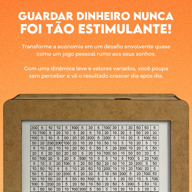 Cofre Desafio 1000 5000 10000 Caixa Dinheiro De Madeira Método Japonês Poupança Mdf