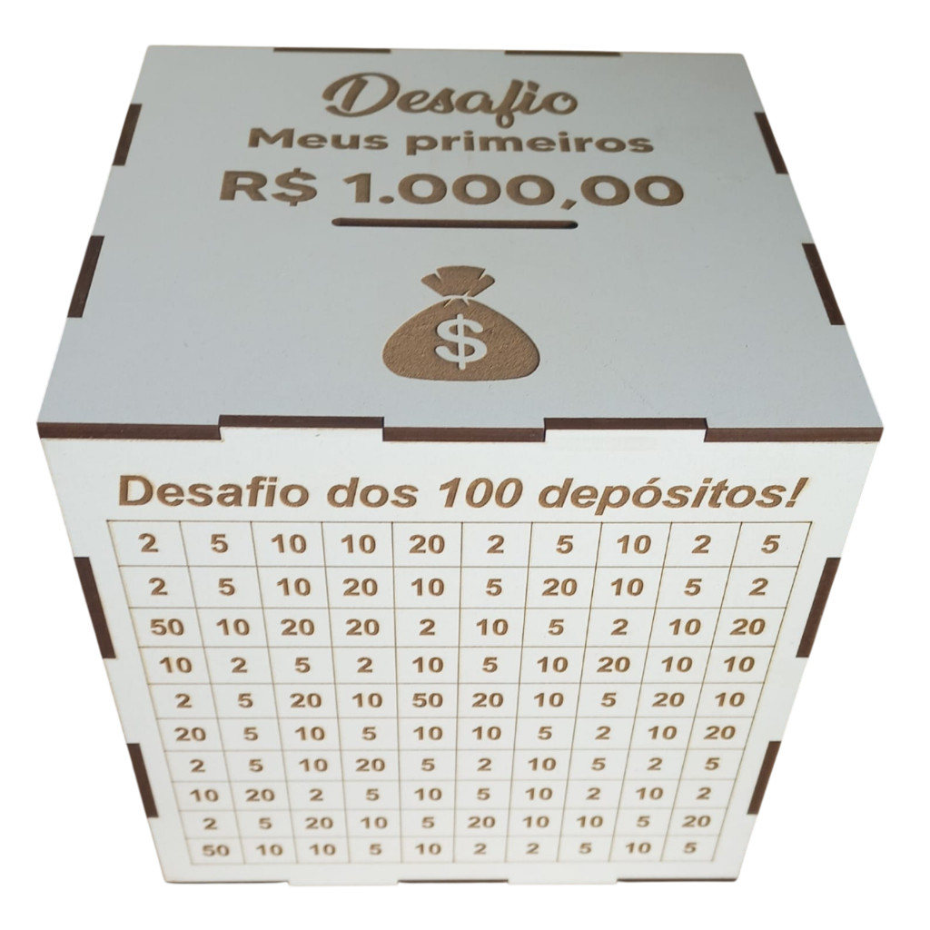 | Cofre MDF Desafio 10 Mil 5 Mil 1 Mil Personalizado Com Caneta Caixa... | R$ 14,90 | 83% | 4.7/5 | 829 |