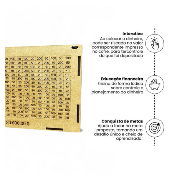 Cofre Desafio 5Mil/10Mil/20Mil Caixa de Dinheiro /MDF / Método Japonês / Poupança / Depósitos