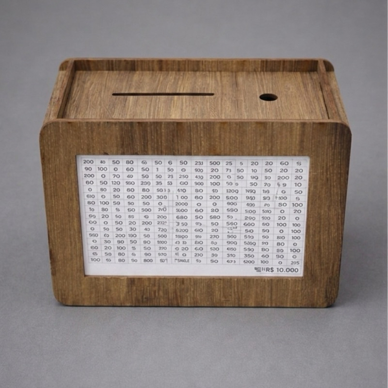 Cofre Desafio Kakebo MDF 1k 2k 5k 10k Caixa de Dinheiro Metas Poupança Cofrinho Promoção