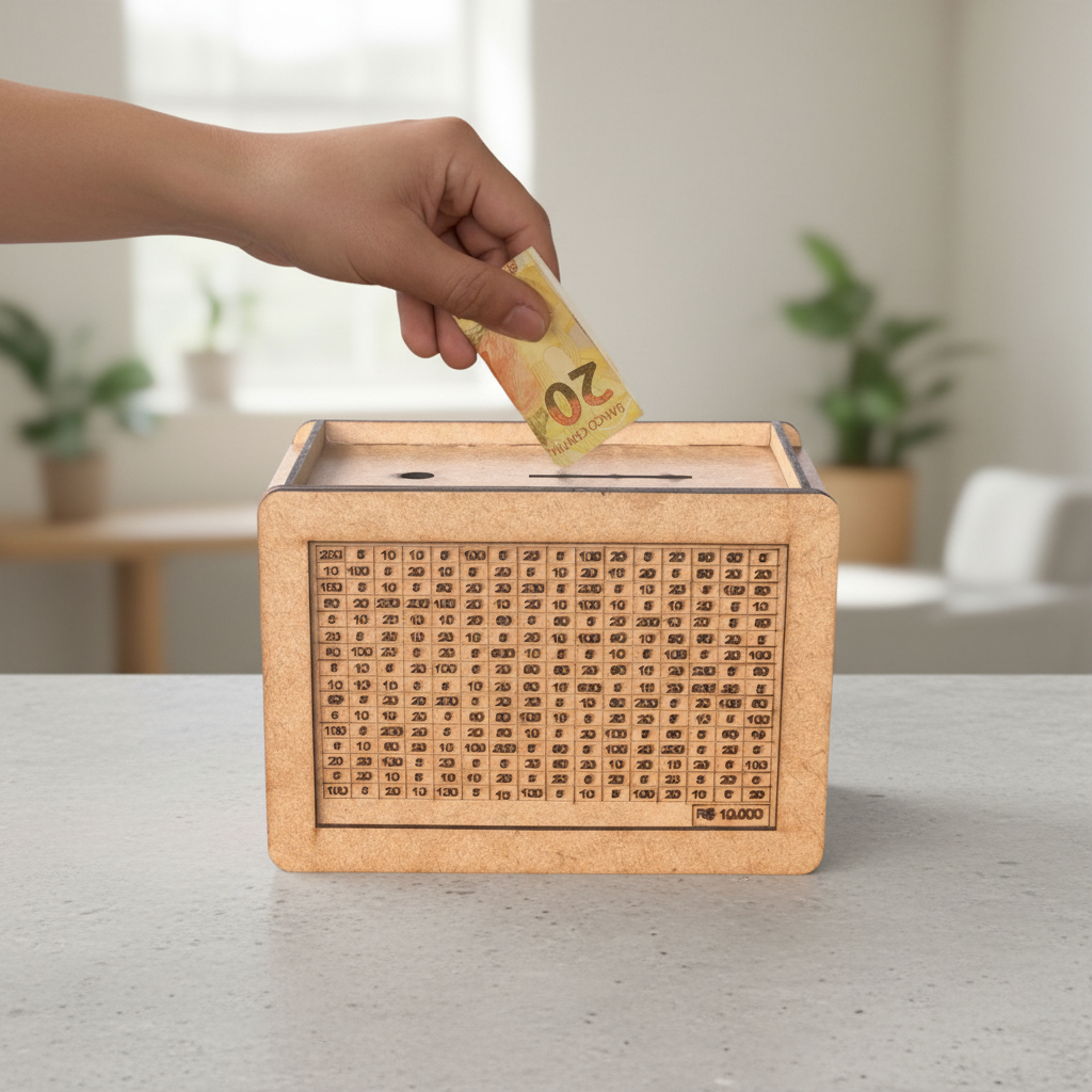 Cofrinho MDF Cofre Japonês com Contador Desafio WoodBox 1mil 2mil 5mil 10mil Guardar Dinheiro Cofrinho aparece na subcategoria Cofres (de Casa e Construção) na Shopee Brasil por R$ 59,90. Avaliado em 4.9/5 pelos compradores e 9 unidades vendidas, este produto se destaca pelo excelente custo-benefício.