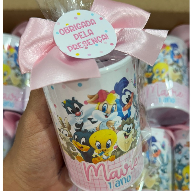 Cofrinho Personalizado Baby Looney Tunes Menina - Rosa - Cofre Personalizado- Embalado com Laço e Tag - Qualquer tema