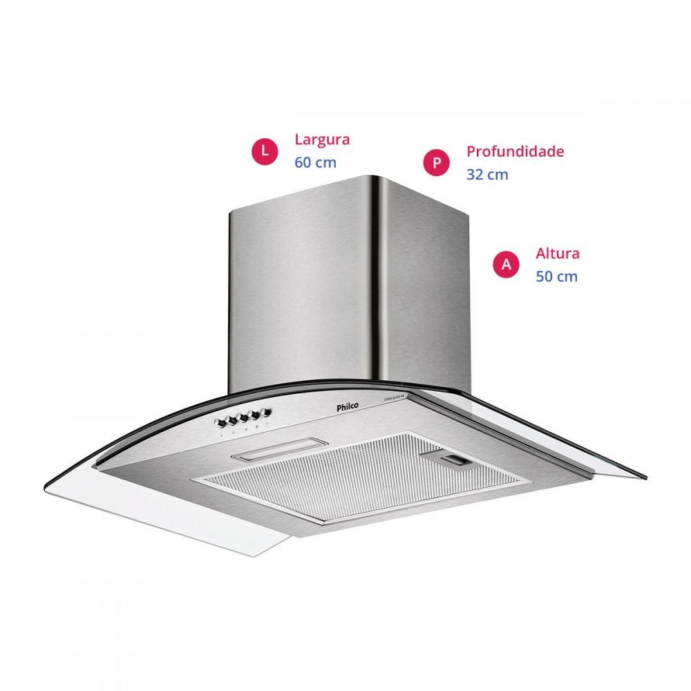 Coifa de Parede Philco Glass PCO60G 60cm 3 Velocidades 220V