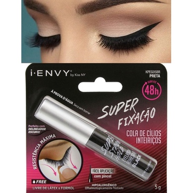 Cola de cílios inteiriços incolor com duração de até 48h, reconhecidade pela sua alta qualidade e resistência máxima. Fórmula à prova d'água, secagem rápida, possui píncel para fácil aplicação. Hipoalergênica e oftalmologicamente testada. LIVRE DE LÁTEX e FORMOL. Modo de usar: Se necessário corte os cílios para ajustá-lo ao tamanho do seu olho. Aplique a cola de cílios inteiriços da I-ENVY BY KISS NY na tira dos cílios e espere de 30-60 segundos até que fique pegajosa. Aplique os cílios rente aos cílios naturais. Segure até que a cola seque totalmente. Para conservar o formato original dos cílios e não danificá-los, guarde os cílios no estojo e evite o uso de máscara de cílios. Peso: 5g