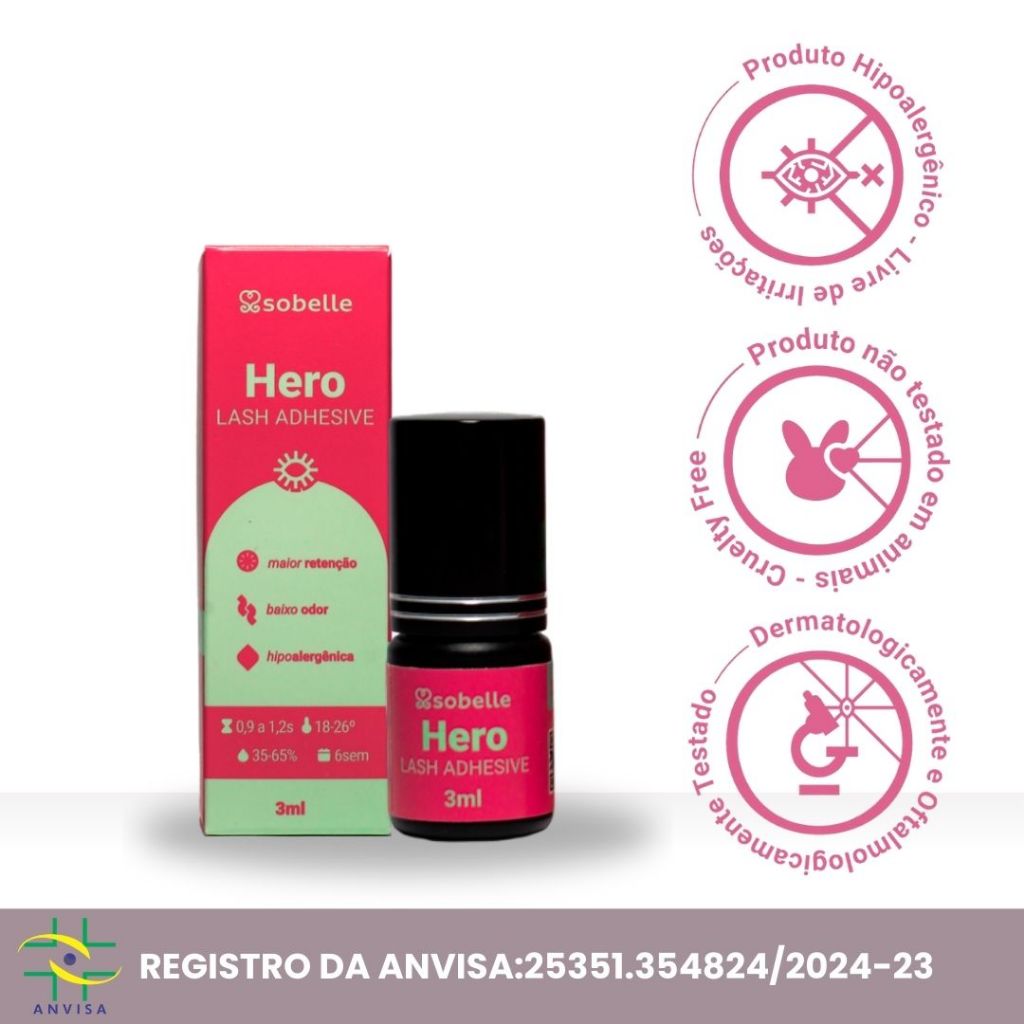 Cola Hero Sobelle A Hero conta com a exclusiva tecnologia de liberação controlada, com redução de resíduos, evitando o excesso de vapores e garantindo uma aplicação mais suave e precisa em todas as técnicas. Informações adicionais: Contém 3g Baixo odor; Fórmula Hipoalergênica: testes dermatológicos, oftalmológicos e microbiológicos; Registro Anvisa: 25351.354824/2024-23; Composição: Ethyl Cyanoacrylate, Polymethyl Methacrylate, Carbon Black; Retenção: ≈ 6+ semanas Tempo de Curagem: 0,9 a 1,2 seg; Temperatura do ambiente: 18° a 26°; Umidade Indicada: 35% a 65%; Acompanhamento grátis: Magic pack, Desobstruidor de Cola + Embalagem Glue Shield. Benefícios: Contém fórmula hipoalergênica: para melhor conforto e segurança em peles sensíveis. Tecnologia coreana e comprovação clínica em testes dermatológicos, oftalmológicos, microbiológicos com registro Anvisa. Glue Shield: Proteção máxima antes da primeira gota! A nova cola Hero possui tecnologia exclusiva. Um sistema de proteção a vácuo, que preserva a embalagem e a integridade da fórmula até o momento de abertura da cola. A ciência por trás da sua confiança. Importante: Somente para uso profissional. Não indicado para autoaplicação.