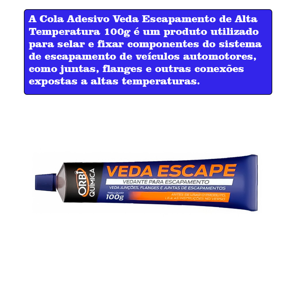 Cola Adesivo Veda Escapamento de Alta Temperatura 100g Produto desenvolvido especialmente para vedação de furos, rachaduras e encaixes de juntas de escapamentos. Resistente a vibrações, umidade e altas temperaturas. - Instruções de uso A superfície deverá estar limpa, seca e livre de óleo ou graxa. Aplicar o produto na quantidade necessária, ligar o motor e deixar secar normalmente pela própria temperatura do escapamento (tempo médio 5 minutos). A Cola Adesivo Veda Escapamento de Alta Temperatura 100g é um produto utilizado para selar e fixar componentes do sistema de escapamento de veículos automotores, como juntas, flanges e outras conexões expostas a altas temperaturas. Aqui está uma descrição detalhada de como e para que esse adesivo é utilizado: Selagem de Juntas e Vedações: O principal propósito deste adesivo é selar juntas e vedações no sistema de escapamento de veículos automotores. Isso inclui a conexão entre o coletor de escape e o tubo de escapamento, juntas entre os componentes do escapamento e outros pontos onde ocorram vazamentos de gases ou líquidos. Resistência a Altas Temperaturas: Este adesivo é formulado para resistir a temperaturas extremas encontradas no sistema de escapamento de veículos, que podem atingir até centenas de graus Celsius durante o funcionamento do motor. Fixação e Vedação Duradoura: A cola adesiva forma uma ligação resistente e duradoura entre as superfícies metálicas, proporcionando uma vedação eficaz mesmo sob condições de alta temperatura e pressão. Flexibilidade e Elasticidade: O adesivo é projetado para ser flexível e elástico, o que permite a expansão e contração dos componentes do sistema de escapamento durante o aquecimento e resfriamento, mantendo a vedação intacta ao longo do tempo. Aplicação Simples: O adesivo é fornecido em forma de pasta ou gel, o que facilita a aplicação em áreas de difícil acesso no sistema de escapamento. Pode ser aplicado diretamente nas superfícies a serem seladas utilizando um aplicador adequado, como um pincel ou espátula. Secagem e Cura: Após a aplicação, o adesivo requer um período de secagem e cura para atingir sua máxima resistência e eficácia. Esse tempo pode variar de acordo com as instruções do fabricante, mas geralmente envolve algumas horas até a cura completa. Compatibilidade: A cola adesiva de veda escapamento é compatível com uma variedade de materiais comuns encontrados no sistema de escapamento de veículos, incluindo aço, ferro fundido, alumínio e ligas metálicas. Manutenção Preventiva: Além de ser utilizada para reparos de emergência, a cola adesiva de veda escapamento também pode ser utilizada como parte de uma manutenção preventiva para prevenir vazamentos futuros e prolongar a vida útil do sistema de escapamento. A Cola Adesivo Veda Escapamento de Alta Temperatura 100g é um produto versátil e eficaz projetado para selar e fixar componentes do sistema de escapamento de veículos automotores, proporcionando uma vedação duradoura e resistente às altas temperaturas do motor.