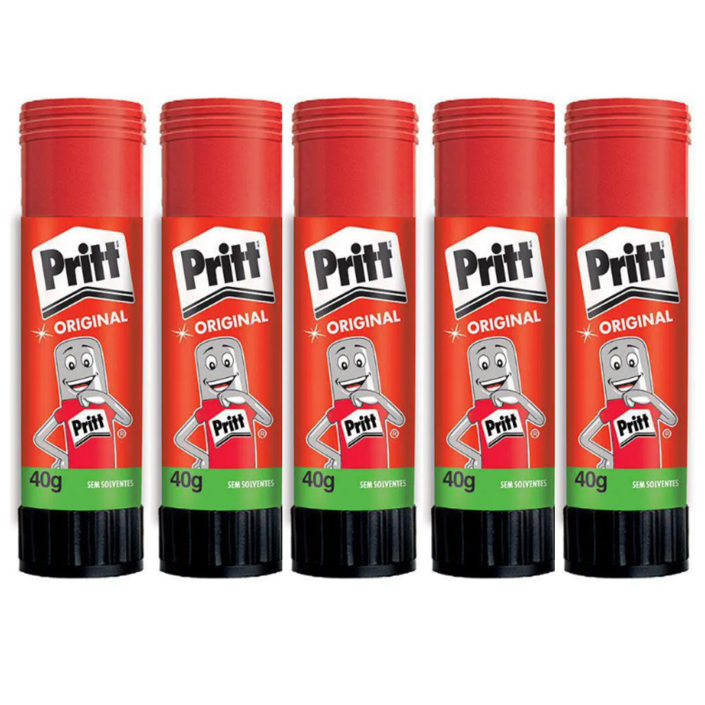 Cola Bastão Pritt Stick Escolar Atóxica Não Tóxica 40g Kit 5 Cor Branco