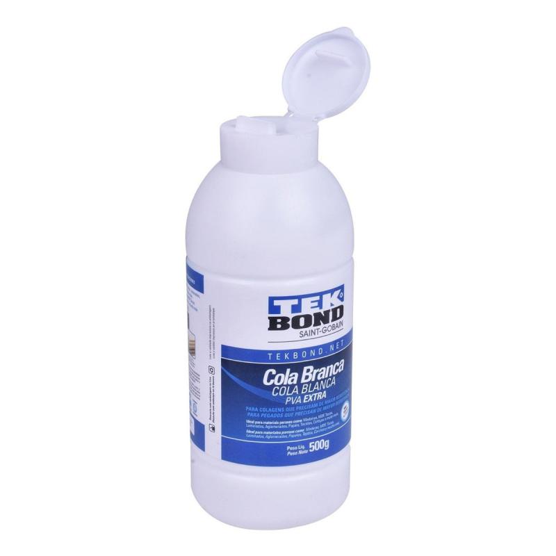 Cola Branca PVA Extra 500 GR TEKBONDUma excelente Cola Branca da marca Tekbond.É um adesivo a base de PVA – Acetato de Polivinila, especialmente desenvolvida para colagens em madeira.Adere a diversos artefatos de madeira como: Fórmica, aglomerados, laminados, Duratex, papel, papelão, superfícies porosas em geral.Benefícios:Um excelente acabamento e uma colagem perfeita.Pode ser utilizada nos processos convencionais de colagem: prensagem a frio e a quente.Características Técnica:Aparência (visual): Líquido branco com odor característicoViscosidade a 25°C: 7.000 a 9.000Teor de sólidos: 45 a 47 %pH a 25°C: 4,00 a 6,00Densidade a 25°C: 1,02 a 1,07Aspecto do filme: Transparente e flexívelCódigo de Fábrica: 22401002301Marca: TEKBONDPeso: 500 grGarantia: 06 meses* Imagens meramente ilustrativas.