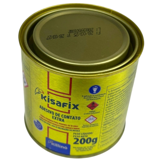 Cola de Contato Kisafix 200g – Fixação Extra Forte para Diversas Aplicações (unidade) A Cola de Contato Kisafix 200g, da renomada marca Killing, é um adesivo premium desenvolvido para oferecer fixação extra forte em diversos tipos de materiais. Ideal para profissionais e hobbystas, essa cola garante alta resistência e durabilidade em cada aplicação.A Onde aplicar? A Kisafix é amplamente utilizada em segmentos como marcenaria, sapateiro, estofaria e artesanato, proporcionando uma excelente aderência em superfícies como: - Couro e Sintéticos – Perfeita para consertos de calçados, bolsas e estofados. - Madeira e MDF – Essencial para móveis planejados, revestimentos e acabamentos. - Laminados e Formicados – Excelente adesão para colagem de painéis decorativos. - Borracha e EVA – Uso ideal em reparos, tapeçaria e peças automotivas. Como aplicar corretamente? Para obter o melhor desempenho, siga as instruções de aplicação: 1. Certifique-se de que as superfícies estejam limpas e secas. 2. Aplique uma camada uniforme da cola em ambas as partes a serem unidas. 3. Aguarde de 10 a 20 minutos até que a cola atinja o ponto de contato ideal. 4. Una as superfícies e pressione firmemente para garantir a fixação. Por que escolher a Cola de Contato Kisafix? - Alto poder de adesão para colagens resistentes e duráveis. - Secagem rápida que otimiza o tempo de trabalho. - Versatilidade para diversos materiais e aplicações. - Fórmula premium que proporciona maior segurança e qualidade. Se você busca uma cola de contato confiável, resistente e fácil de aplicar, a Kisafix 200g é a escolha ideal. Adquira agora e tenha em mãos um produto de alto desempenho para seus projetos e reparos!