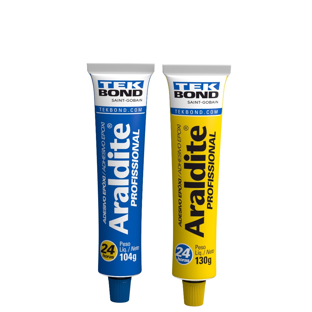 Cola Araldite Profissional Epóxi Tekbond 24h 234g Descrição: - Araldite Profissional é indicado para colar superfícies de materiais lisos, porosos ou irregulares como azulejos, madeira, vidro, concreto, fibras naturais, pedras, a maioria dos plásticos rígidos (exceto polipropileno, polietileno e Nylon®), metais e outros materiais. Resiste a temperaturas de até 80°C, secagem inicial em 90 minutos e secagem total em 24 horas. Aplicações Sugeridas: - Madeira; - Azulejo; - Metal; - Vidro; - Cerâmica; - Cortiça; - Plástico. Modo de Usar: - Limpar as superfícies a serem coladas, deixando-as isentas de oleosidade, poeira, oxidações e restos de tintas; - Colocar partes iguais de resina e endurecedor, na proporção de volume de 100:100 (em peso de 100:80 - 100 partes de resina para 80 partes de endurecedor), sobre uma base plana e limpa; - Misturar até obter uma massa homogênea; - Utilizar a mistura em até 60 minutos; - Aplicar uma camada fina da mistura sobre as duas partes, pressionar e aguardar a secagem completa; - Fechar cada tubo com a sua respectiva tampa. A inversão da tampa, mesmo que momentânea, pode causar a colagem da mesma; - Após o uso, lavar as mãos com água e sabão. A cura total ocorre em 24 horas. Especificações Técnicas: - Resistência ao calor: 80ºC; - Resina: Resina epóxi; - Endurecedor: N,N-Dimetildipropilenotriamina, trietilenotetramina; - Cura Inicial: 90 Minutos; - Cura total: 24 Horas; - Peso Líquido: 234 g; - Resina: Líquido Incolor Amarelado.