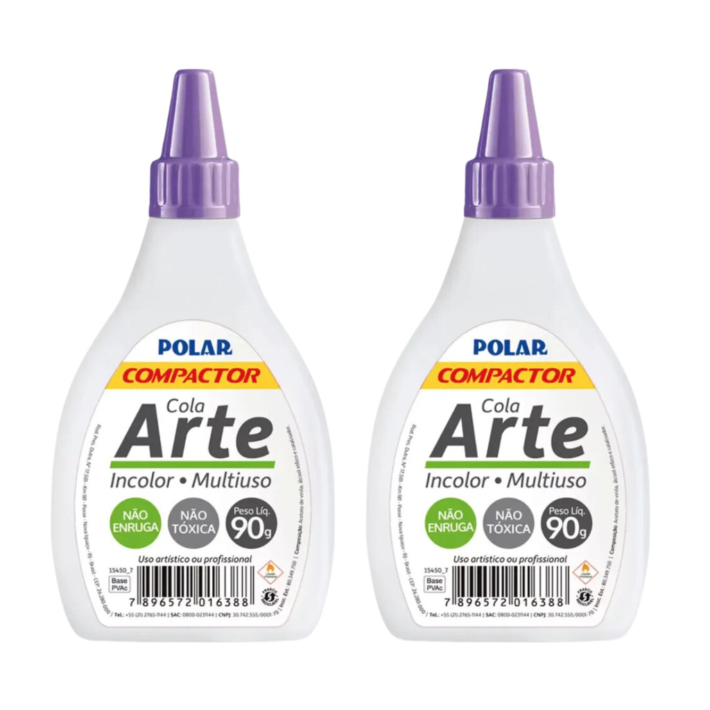A Cola Incolor Multiuso Arte Polar é a escolha ideal para quem busca praticidade, eficiência e versatilidade em seus projetos. Com sua fórmula transparente e de alta qualidade, essa cola é perfeita para diversas aplicações, desde artesanato e trabalhos escolares até reparos rápidos em casa ou no escritório. Este kit com 2 unidades oferece excelente custo-benefício. A fórmula incolor da Cola Multiuso Arte Polar proporciona um acabamento limpo e discreto, sem interferir na estética dos seus projetos. Ideal para trabalhos que exigem precisão e um toque impecável. A embalagem de 90g é ergonômica e fácil de manusear, permitindo uma aplicação precisa e sem desperdício. O bico aplicador facilita o controle do fluxo, proporcionando uma experiência mais limpa e eficiente. Transforme suas ideias em realidade com a Cola Incolor Multiuso 90g Arte Polar. Versátil, prática e de alta performance, é a parceira ideal para todos os seus projetos criativos e funcionais. Não perca a oportunidade de agregar eficiência e qualidade ao seu trabalho com este kit especial de 2 unidades. ESPECIFICAÇÕES 2 Tubos de cola; Com 90g cada tubo; Multiuso; Incolor; Não enruga; Não tóxica; Marca: Compactor.
