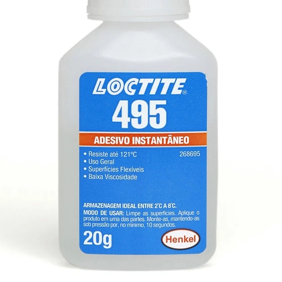Adesivo Instantâneo 495 - 20g Descrição: - O Adesivo Instantâneo 495 da Loctite é ideal para usos gerais, com alto poder de adesão; - Com baixa viscosidade; - Oferece uma adesão rápida em uma ampla gama de materiais; - Desenvolvido à base de etil cianoacrilato; - Capaz de aderir a uma vasta gama de materiais, incluindo plásticos, borrachas e metais; - Também pode aderir poliolefinas quando usado junto com o Primer 770 e 7239 da Loctite. Informações Gerais: - Uso geral; - Baixa viscosidade; - Transparente; - Baixo viscosidade. Especificações Técnicas: - Cor: Ultra claro; - Tempo de fixação: 5 a 20 segundos; - Preenchimento de Lacuna: 0.15 mm; - Tecnologia: Etil Cianoacrilato; - Embalagem: Tubo; - Quantidade: 20 g. Itens Inclusos: - 1 Adesivo Instantâneo 495 20g Loctite.