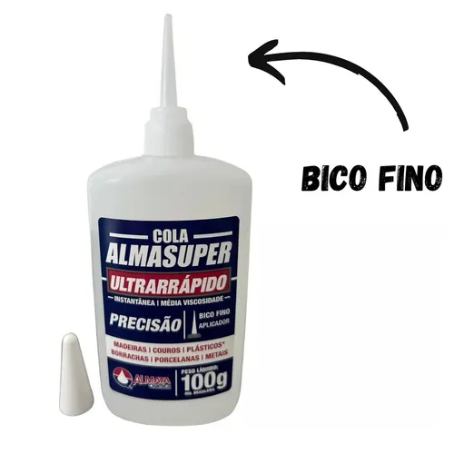 Cola Instantânea Almasuper 100g Adesiva Secagem Rápida Bico Fino de Precisão