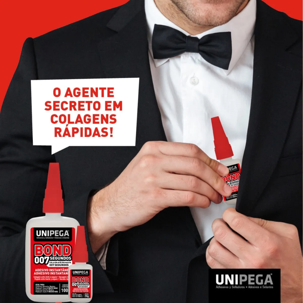 Super Bond 007 Cola Instantânea - Frasco 100g Desfrute de uma colagem extra forte e segura com a Bond 007. Sua fórmula permite o reposicionamento das peças antes da secagem rápida, garantindo um resultado perfeito. Se você busca uma solução ágil para seus consertos e reparos, sua busca acaba aqui! O Adesivo Instantâneo Bond 007 Segundos oferece uma colagem impecável em diversos materiais, tanto porosos quanto não porosos. Sua transparência e capacidade de multi-colagens proporcionam uma adesão rápida e robusta. Seja para restaurar aquela cerâmica preciosa, um enfeite especial ou a sola do seu sapato, conte com a eficiência do Adesivo Instantâneo Bond 007 Segundos! Basta aplicar uma pequena quantidade na área desejada, aguardar apenas 7 segundos e o problema estará resolvido! Dica Importante: Uma dúvida comum: é necessário refrigerar o Adesivo Instantâneo Bond 007 após aberto? A resposta é não. A Bond 007 Segundos da Unipega não exige refrigeração, mas recomenda-se armazená-la na embalagem original, em um local fresco, protegido da luz solar direta e distante de fontes de calor. Indicações de Uso: O Bond 007 Segundos é um adesivo instantâneo à base de cianoacrilato, ideal para multi-colagens. Em apenas 7 segundos, ele adere firmemente a uma vasta gama de materiais, incluindo: borrachas, metais, plásticos, porcelanas, madeiras, lonas, couros e muitos outros substratos. Sua aplicação é simples e o acabamento, excelente! Modo de Aplicação e Tempo de Cura: Para usar, desenrosque a tampa completamente com o frasco na vertical. Limpe as superfícies a serem coladas com álcool para remover qualquer impureza. Aplique uma pequena quantidade de Bond 007 Segundos em uma das partes e una-as com firmeza até a adesão ocorrer (o excesso de adesivo pode retardar o processo). Após o uso, limpe o bico com um papel e feche bem a tampa.