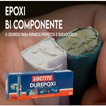 Durepoxi Massa Loctite 100gCaracterísticas do produtoUso Indicado.Metal, Vidro, Madeira, Cerâmica, Cimento, Mármore e Plástico.Modo de Usar.Conteúdo da Embalagem.Armazenamento.Estocar o produto em local coberto, fresco, seco e ventilado, fora do alcance de crianças, animais e longe de fontes de calor.BenefíciosSolda, molda, veda e fixa com praticidade, rapideze segurança;Extraforte e resistente;Excelente acabamento;Pode ser pintado, envernizando, serrado ou lixado;Ideal para uso doméstico, profissional e artesanato;Resistente a temperaturas (-50ºC a +150ºC);Endurece até debaixo d’águaAplicaçõesProduto bi componente, solda a frio, molda, fixa, veda e reconstrói diversos tipos de materiais;Indicado para metal, vidro, cerâmica, cimento, mármore e plástico*.Garanta já a sua compra!Entrega super rápida!