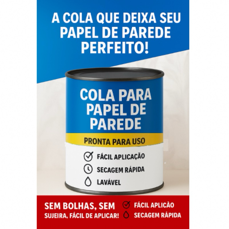 Indicada para a colagem de papeis de parede, placas de pvc, pisos de borracha, pisos Vinilico, grama sintética, couro, metais, lambris e diversos materiais sintéticos em madeiras compensadas, aglomerados, MDF e diversos substratos. Itens inclusos: Cola para papel de parede profissional Pronta para uso, Pode ser usada para colar diversos materiais e superfícies garantindo alta resistência PINCEL: Para aplicar a cola Com nosso Kit Completo para instalação e reparos em papel de parede você conta com a segurança de ter os materiais certos e de melhor qualidade, confira: ESPATULA: Para esticar bem seu papel na parede evitando bolhas e amassos ESTILETE: Para um corte mais preciso e prático NÃO DEVE SER USADO EM MATERIAIS DE ISOPOR E DERIVADOS INSTRUÇÕES DE USO: Certifique-se de que as superfícies a ser coladas estejam secas e limpas (livres de poeira, gordura ou qualquer resquício de oleosidade). Caso a superfície de colagem não seja porosa ou nivelada, recomendamos que você lixe a peça para propiciar melhor ancoragem da cola. Mexa a cola antes de usar. Em seguida, aplique uma camada uniforme de cola em ambas as superfícies a ser coladas com uma espátula dentada, pincel de cerdas duras ou rolo de lã de carneiro. Aguarde o tempo de secagem da cola em ambas as superfícies de 10 a 15min. Esse tempo pode variar conforme a temperatura e a ventilação do ambiente. OBS.: verificar com a ponta dos dedos se há aderência. Os dedos não devem ficar com resíduos da cola. Faça a união das peças apenas após a secagem, pressionando do centro para as pontas, evitando assim a formação de bolhas. Após o uso, feche bem a embalagem do produto, para prolongar sua vida útil. Não teste a resistência da colagem antes de 48 horas após a pressão. Recomendamos a realização de testes antes da aplicação final do produto. !!ATENÇÃO!! NÃO DEVE SER USADO EM MATERIAIS DE ISOPOR E DERIVADOS