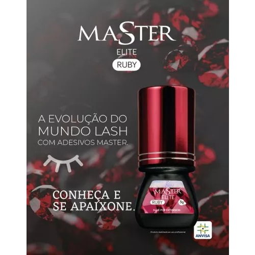 UMA NOVA JOIA PARA VOCÊ SE APAIXONAR Já pensou se existisse um adesivo que pudesse ser trabalhado nas temperaturas altas do nordeste e, ao mesmo tempo, nas temperaturas baixas do sul? Que funcionasse super bem mesmo com as variações de umidade do nosso país? E, além de tudo isso, fosse um adesivo de alta retenção e secagem super rápida? A Master aceitou o desafio e criou o MASTER ELITE RUBY... Um adesivo com todos esses diferenciais e que chegou para se tornar a mais nova joia do mercado Lash! O adesivo MASTER ELITE RUBY é realmente uma joia preciosa para o mundo Lash! Com uma formulação desenvolvida exclusivamente para as variações climáticas do nosso país, esse adesivo chega com um atrativo de tirar o fôlego... O tempo de secagem! que é de 0,5 à 1 SEGUNDO, você piscou e a cola FIXOU!!!!! Além de tudo isso, é hipoalergênico, possui uma viscosidade fina e baixos níveis de ardor e odor. Tudo o que um adesivo precisa ter, o nosso RUBY tem!