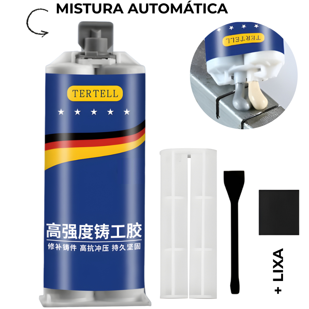 Cola para Metal de Reparo Industrial Adesivo AB- Soldagem a Frio Reparo Rápido e Resistente ao Calor