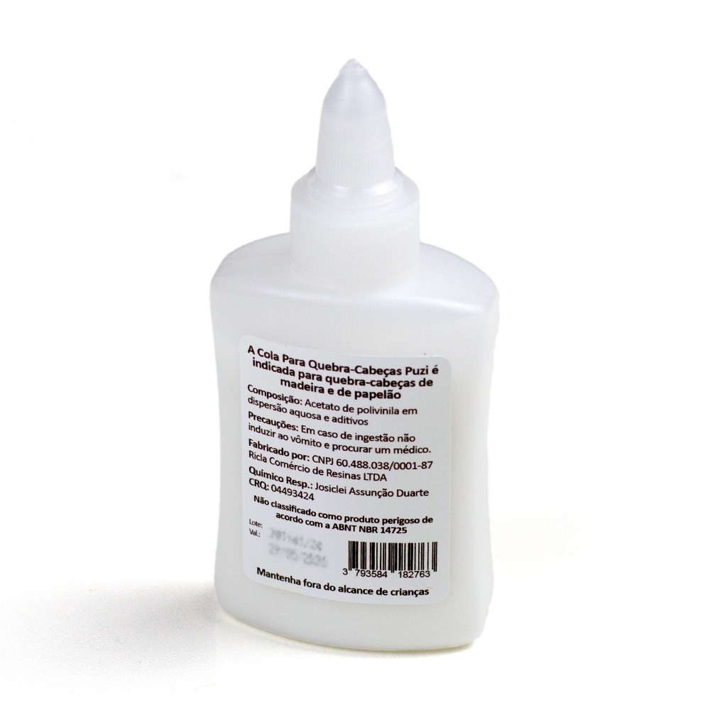 Cola para Quebra-Cabeças de Madeira e Papelão – Puzi (40g) Montar um quebra-cabeça é uma experiência especial — e a Cola Puzi foi feita para preservar esse momento com praticidade. Ideal para quebra-cabeças de madeira (MDF) e papelão, ela garante fixação segura, secagem rápida e acabamento fosco, sem sujeira e com resultado duradouro. Com fórmula segura, fácil de aplicar e um aplicador grátis incluso, ela transforma sua montagem em uma peça decorativa pronta para ser emoldurada ou exibida com orgulho. Destaques do produto: - Fácil de aplicar: espalha com leveza, sem bagunça - Secagem rápida: agilidade no processo - Fixação segura e duradoura - Acabamento fosco: valoriza a imagem sem reflexos - Compatível com quebra-cabeças de madeira e papelão - Aplicador grátis incluso - Produto seguro, não tóxico - Rendimento: 1 frasco (40g) cola de 2 a 3 quebra-cabeças Puzi Como colar e transformar seu quebra-cabeça em decoração 1- Prepare a base: coloque o quebra-cabeça montado sobre uma superfície plana e firme. 2- Limpe a superfície: passe um pano seco para remover a poeira. 3- Aplique a cola: despeje uma quantidade moderada e espalhe com o aplicador incluso. 4- Aguarde a secagem: deixe secar por pelo menos 30 minutos. 5- Exiba com orgulho: emoldure ou use fita dupla face para fixar na parede.