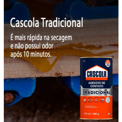 Cascola Tradicional sem Toluol é uma cola de contato de alto desempenho, que mantém suas propriedades físicas inalteradas mesmo exposta à água, não sofrendo inchamento. Devido à sua fórmula sem toluol, Cascola Tradicional não contém substâncias consideradas inalantes com potencial de abuso que podem desencadear a autoadministração e não possui odor após 10 minutos. Indicada para colagem de madeiras, couro, compensados, lâminas decorativas e espuma sobre diversos materiais como madeira, MDF, concreto, cimento, cerâmica, entre outros materiais. Proporciona total aderência entre substratos semelhantes ou distintos, com bom acabamento e alta performance. Modo de aplicação: 1. Prepare as superfícies a serem coladas, deixando-as limpas, firmes e niveladas. Lixe-as quando necessário para torná-las mais ásperas ou em casos de superfícies pintadas ou com tintas em má condições. 2. Aplique uma camada uniforme em ambas as superfícies. Aguarde por 5-10 minutos a secagem do adesivo antes de unir as partes. 3. Caso o material seja poroso, repita a aplicação após 20-30 minutos. 4. Alinhe as superfícies e junte-as, fazendo pressão do centro para as bordas, a fim de evitar a formação de bolhas. 5. Limpe os instrumentos de aplicação após o uso (antes da secagem da cola) com o diluente “Cascola Reducola sem Toluol”.