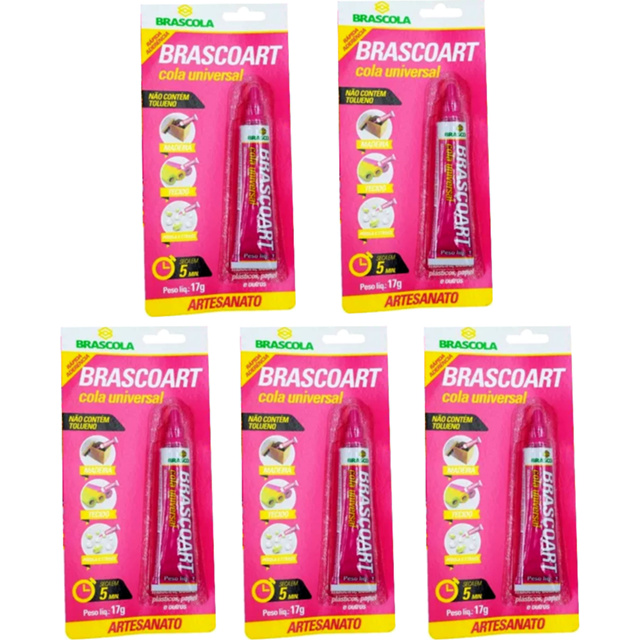 Cola Universal Brascoart 17g Artesanato / Madeira, Couro, Plástico, Papel, Artesanato kit 5 Unidades