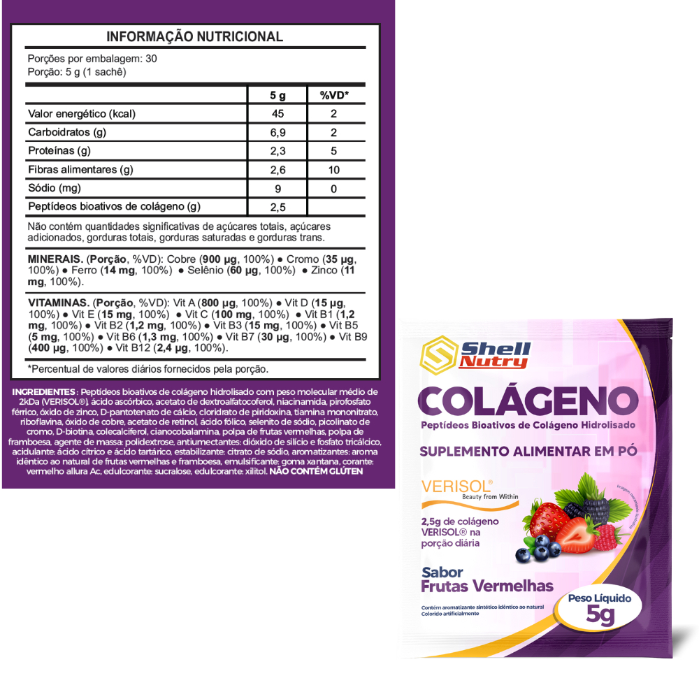 Colágeno Hidrolisado 5g c/ 30 sachês – FRUTAS VERMELHAS Shell Nutry