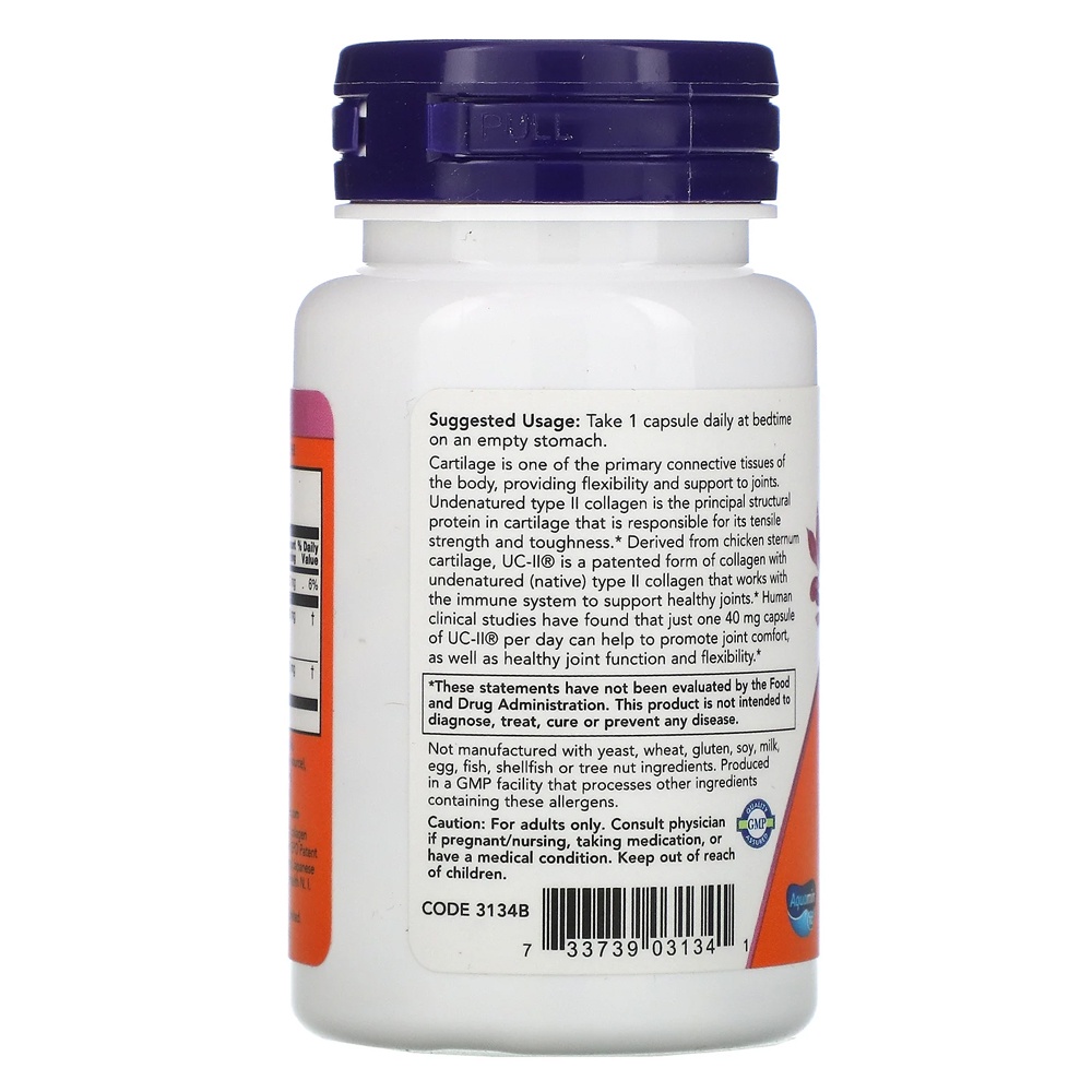 Colágeno Tipo 2 UC-II 40mg Now Foods 60 Veg Caps