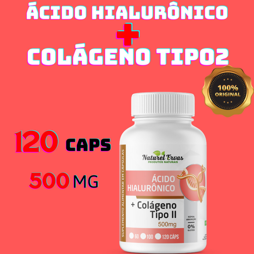 ENVIAMOS NO MESMO DIA! Colágeno Tipo II + Ácido Hialurônico 120 Cáps – Articulações O Colágeno Tipo II + Ácido Hialurônico é essencial para a saúde das articulações, auxiliando na lubrificação, flexibilidade e regeneração da cartilagem. Com 120 cápsulas de 500mg, esse suplemento melhora a mobilidade, reduz o desgaste articular e alivia desconfortos causados pelo impacto diário. O Ácido Hialurônico potencializa a hidratação das articulações, contribuindo para um movimento mais fluido e saudável. Ideal para quem busca proteção articular, suporte ósseo e mais qualidade de vida. Indicado para atletas, idosos e pessoas com desgaste nas articulações. Cuide do seu corpo com a combinação perfeita para articulações mais fortes e saudáveis! Atenção: Não é medicamento! É um suplemento alimentar!