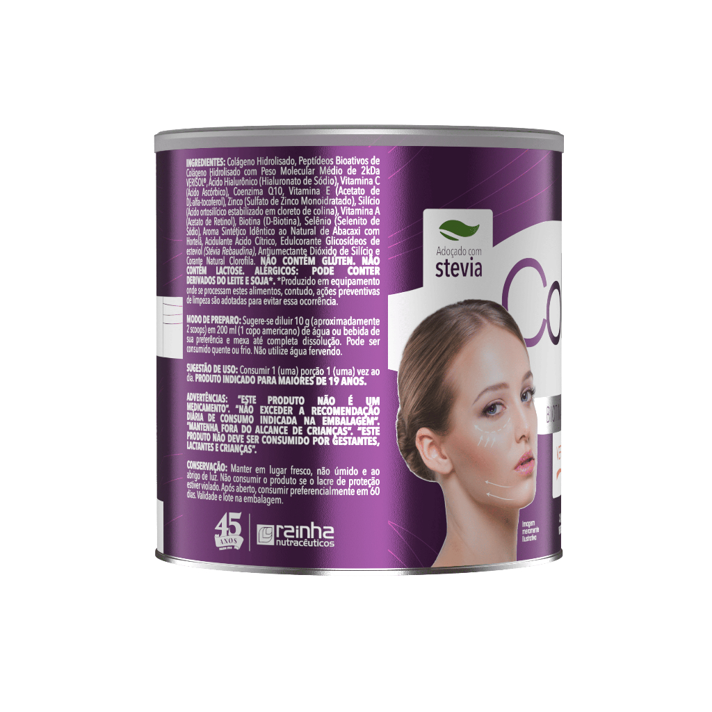 COLÁGENO VERISOL COM ÁCIDO HIALURÔNICO 200G BODYACTION Os peptídeos bioativos de colágeno hidrolisado com peso molecular médio de 2kDa auxiliam na manutenção da saúde da pele. Fórmula arquitetada com perfeição: - Com Peptídeos de Colágeno Verisol - Com Ácido Hialurônico - Com Biotina - Com Coenzima Q10 - Com Vitamina A, C, E, Zinco e Selênio - Adoçado naturalmente com Stevia. Apresentação: Lata 200g Sugestão de uso: Consumir 1 porção 1 vez ao dia. Rende em média 20 porções. “Este produto não deve ser consumido por gestantes, lactantes e crianças.”