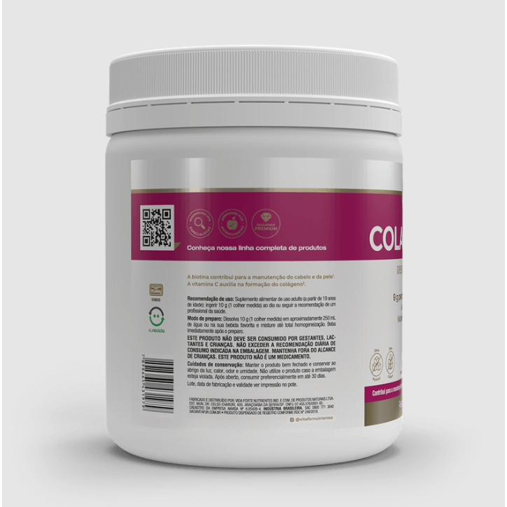 Dados científicos: Envelhecer é natural. É um processo pelo qual todos passamos. E é normal, também, que a aparência da pele mude com o tempo, afinal, ela perde colágeno – o responsável pela sua estruturação. Outros fatores, como exposição à radiação UV, poluição e produtos químicas, e estilo de vida também estão interligados ao envelhecimento da pele. A boa notícia é que, com o aliado certo, é possível manter a pele em sua melhor versão. Estudos mostram que o colágeno hidrolisado proporciona diversos benefícios à pele, entre eles, possui eficácia no aumento da elasticidade da pele, redução de rugas e aumento da deposição de colágeno na derme; melhora a retenção da umidade e atua nos tecidos conjuntivos da pele, tendões e ligamentos, além de atuar na manutenção da saúde das unhas. Colagentek, da Vitafor, possui uma formulação pensada para a saúde da sua pele, dos cabelos e das unhas. Além de peptídeos de colágeno, conta ácido ortosilícico, que pode estimular a produção de colágeno; ácido hialurônico; biotina e diversas vitaminas, como C, A, E, D, B6 e B12, que auxiliam no funcionamento do sistema imune e, na proteção dos danos causados pelos radicais livres. Benefícios: A biotina contribui para a manutenção do cabelo e da pele; A vitamina C auxilia na formação do colágeno; A vitamina A auxilia na visão; As vitaminas A, B6, B12, C, D, ácido fólico e o cobre auxiliam no funcionamento do sistema imune; As vitaminas A e B3 contribuem para a manutenção da pele e o cobre para a pigmentação de cabelo e pele; As vitaminas B3, B5, B6, B12, C, biotina, o cobre e o manganês auxiliam no metabolismo energético; As vitaminas C e E, o cobre e o manganês são antioxidantes que auxiliam na proteção dos danos causados pelos radicais livres; Manganês auxilia na formação de ossos e a vitamina D na formação de ossos e dentes; A vitamina D auxilia no funcionamento muscular; Ácido fólico auxilia na síntese de aminoácidos; Cobre auxilia na manutenção dos tecidos conjuntivos e o manganês na manutenção dos tecidos conectivos. Diferenciais: 9 g de peptídeos de colágeno por porção; 10 mg de ácido ortosilícico por porção; Formulação com precursores de colágeno; Deliciosos sabores; Versatilidade no sabor neutro; Versões pote e sachê; Fonte de vitaminas e minerais; Zero adição de açúcares. Como consumir? Suplemento alimentar de uso adulto (a partir de 19 anos de idade): ingerir 10g (1 colher medida ou 1 sachê) ao dia ou seguir a recomendação de um profissional da saúde. Dissolva 1 colher medida ou 1 sachê em aproximadamente 250 mL de água ou na sua bebida favorita e misture até total homogeneização. Beba imediatamente após o preparo.