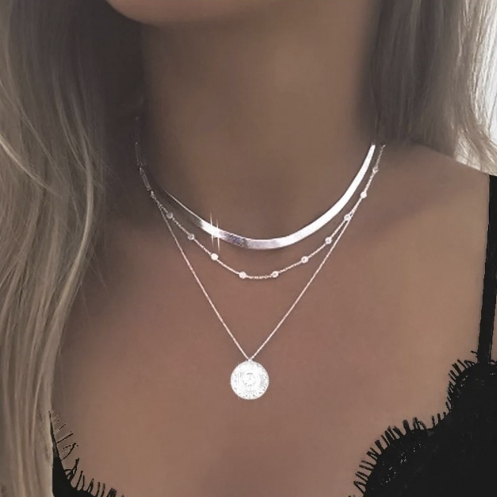 Colar 3 Camadas Osso de Cobra Pingente Mandala de Sol