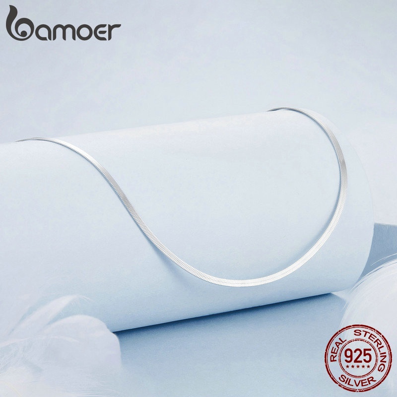 Colar Bamoer 925 Sterling Sliver Necklace Básico De Jóias Em Cadeia De Cobra Para Mulheres