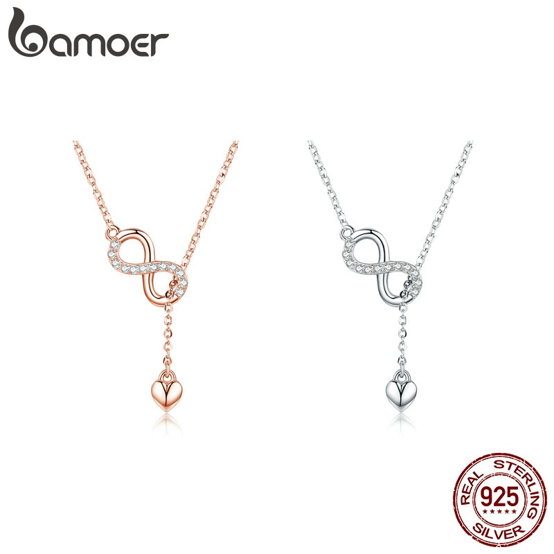 Colar Bamoer S925 Prata Elegante Corrente De Charme Infinito Pingente De Zircônia Para Mulheres Joias Acessórios