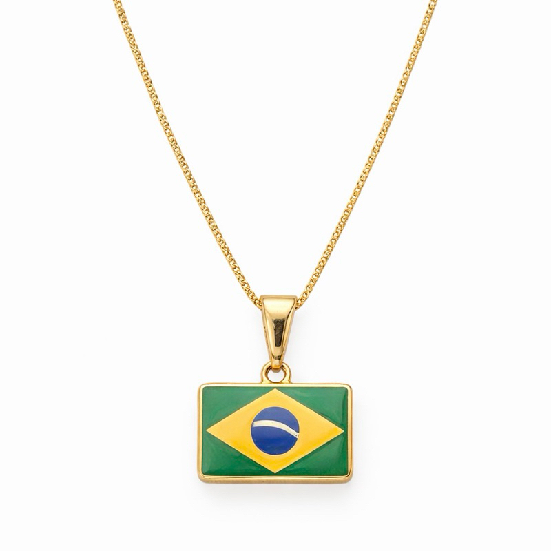 Colar Bandeira Do Brasil Semijoia Ouro 18k