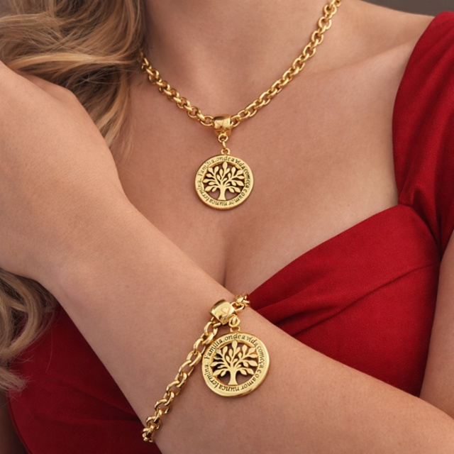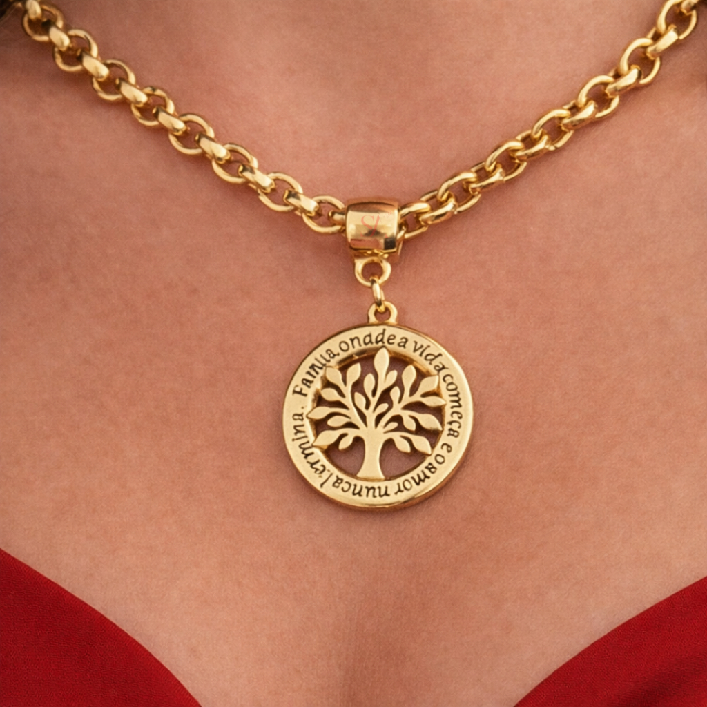 Colar Banhado e Pulseira elo português arvore da vida conjunto feminino cod.01