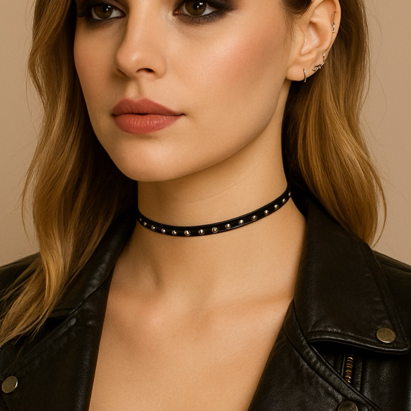 Colar Chocker em camurça com tachinhas dourado e prata várias cores