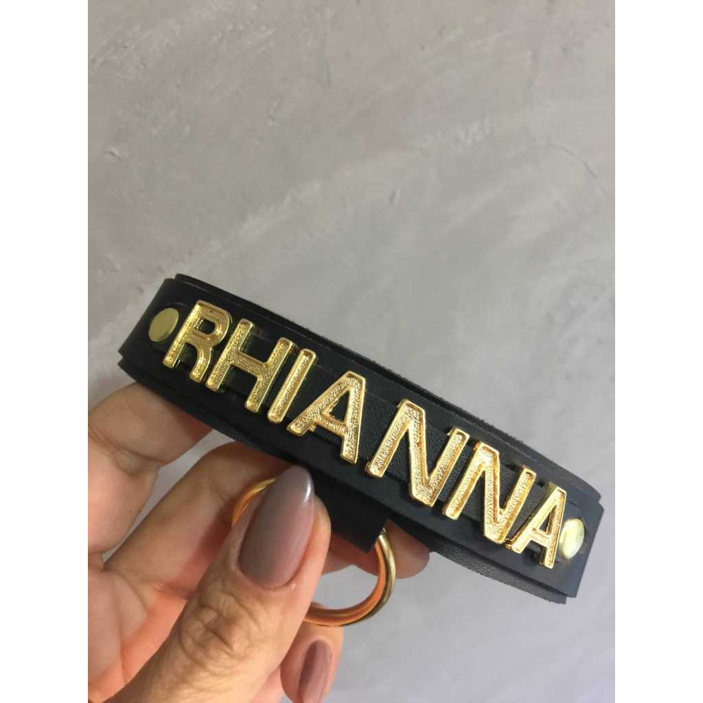 Coleira + a Guia em couro com Nome Personalizado Obs: APÓS A COMPRA INFORME O DIZER QUE VAI NO CHOKER E A COR DESEJADA - Cores : PRETO / VERMELHO / ROXO OBS: C/LETRAS DOURADAS 100% DISCRETO NO ENVIO Linda Coleira em couro com Mosquetões, Rebites e Argolas. Cores : PRETO / VERMELHO / ROXO Usamos apenas materiais naturais e duráveis. O que manterá nossos produtos inalterados por um longo período de tempo. Em Couro Largura: 2.0 cm Espessura: entre 1,5mm a 2,0mm Tamanho da coleira : de 40 a 44 cm Tamanho da guia : 60 a 70cm 100% DISCRETO NO ENVIO