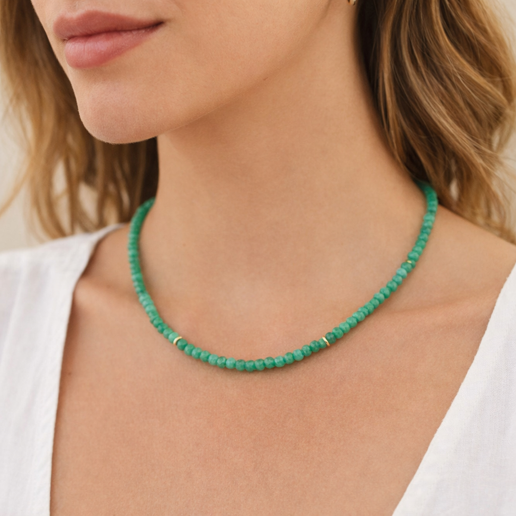 Colar Choker Pedra Jade Delicado Banhado a Ouro 18k