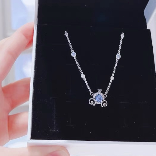 {Colar Cinderela em Prata S925} Presente para Amante com Corrente de Clavícula para Transporte de Abóbora da Disney