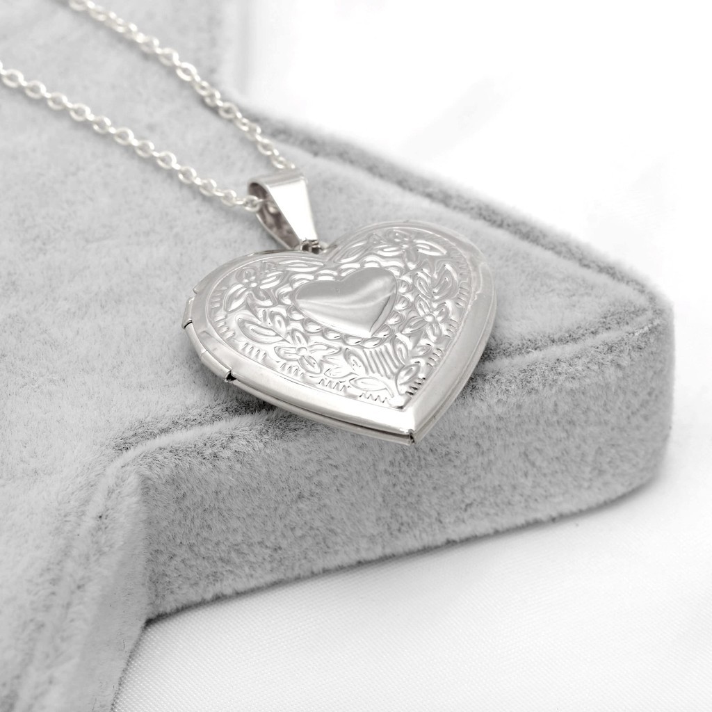 Colar Com Medalhão Em Formato De Coração-Pingente De Amor Aço Inoxidável Padrão Gravado , Presente Moderno