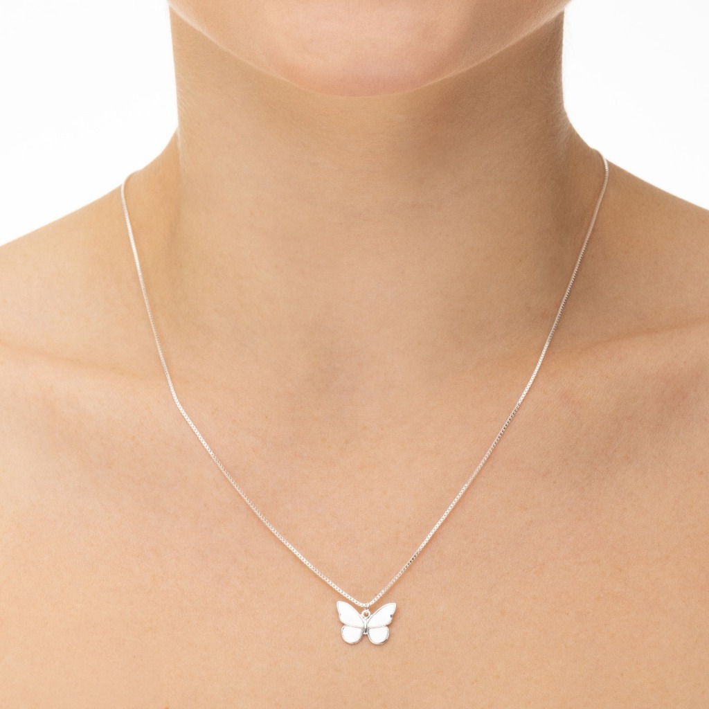 Colar com Pingente Borboleta Folheado a Prata 925 – Feminino, Delicado, Antialérgico, Corrente 45+5 cm