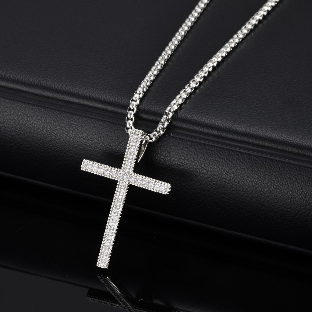 Colar Com Pingente De Cruz De Zircônia Branca Vnox Para Mulheres E Homens , Unissex Cor Prata CZ Brilhante Joias Finas P