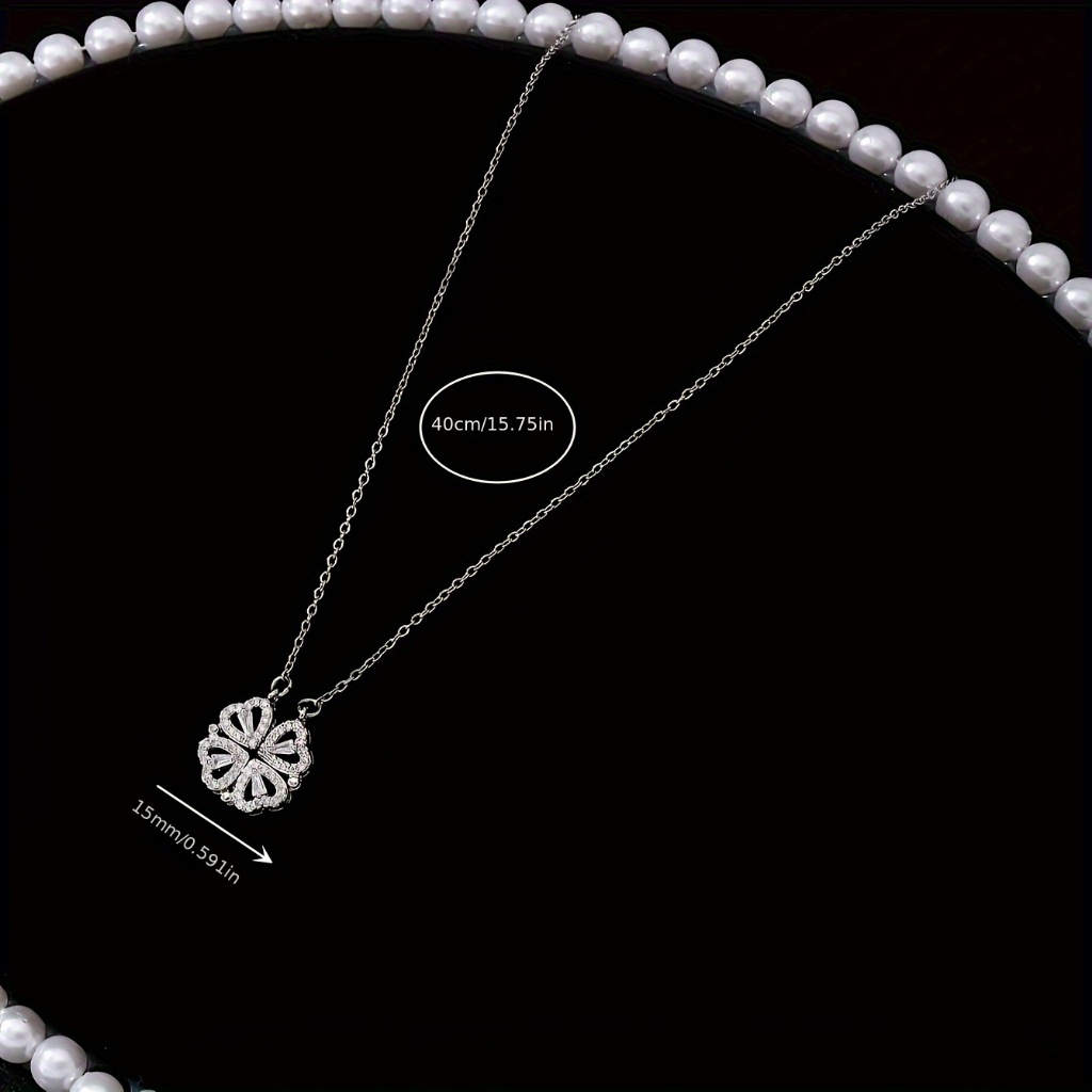 Colar com Pingente de Trevo de Quatro Folhas em Aço Inoxidável Prateado Abre-Fecha e Coração Pequeno de Zircônia