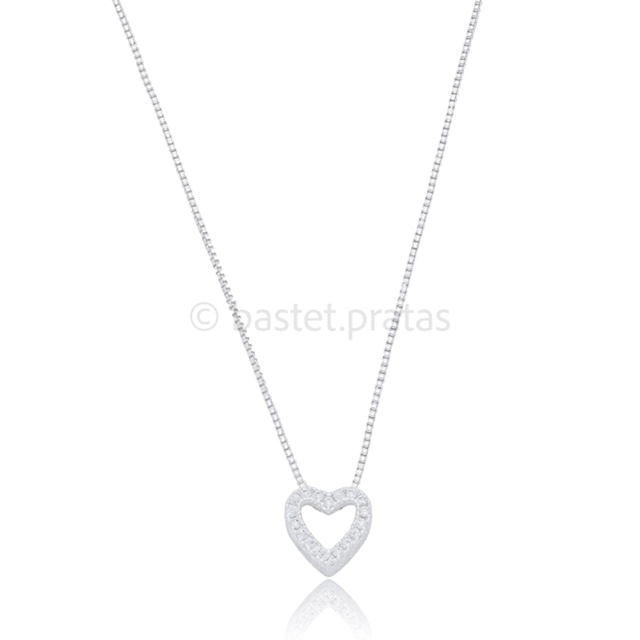 Colar Coração Cravejado Passante Banhado a Prata
