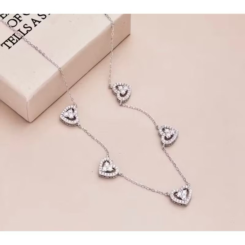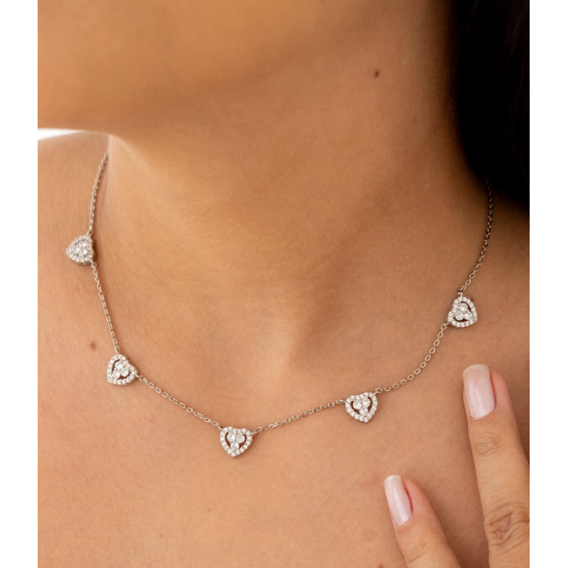 Colar Corações Cravejado Em Prata Legítima 925 Eternal